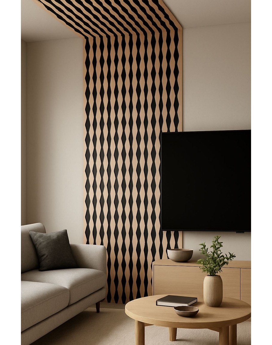 Акцентните стени са модерен тренд в интериорния дизайн, който позволява да се фокусира вниманието върху конкретна функционална зона. Акцентирането може да се постигне с различни методи и средства, но един от най-лесните и евтини варианти е използването на декоративни пана. Нашият MDF панел J2427 е не просто естетически издържан, но и създаден да подобрява акустиката в затворените пространства.