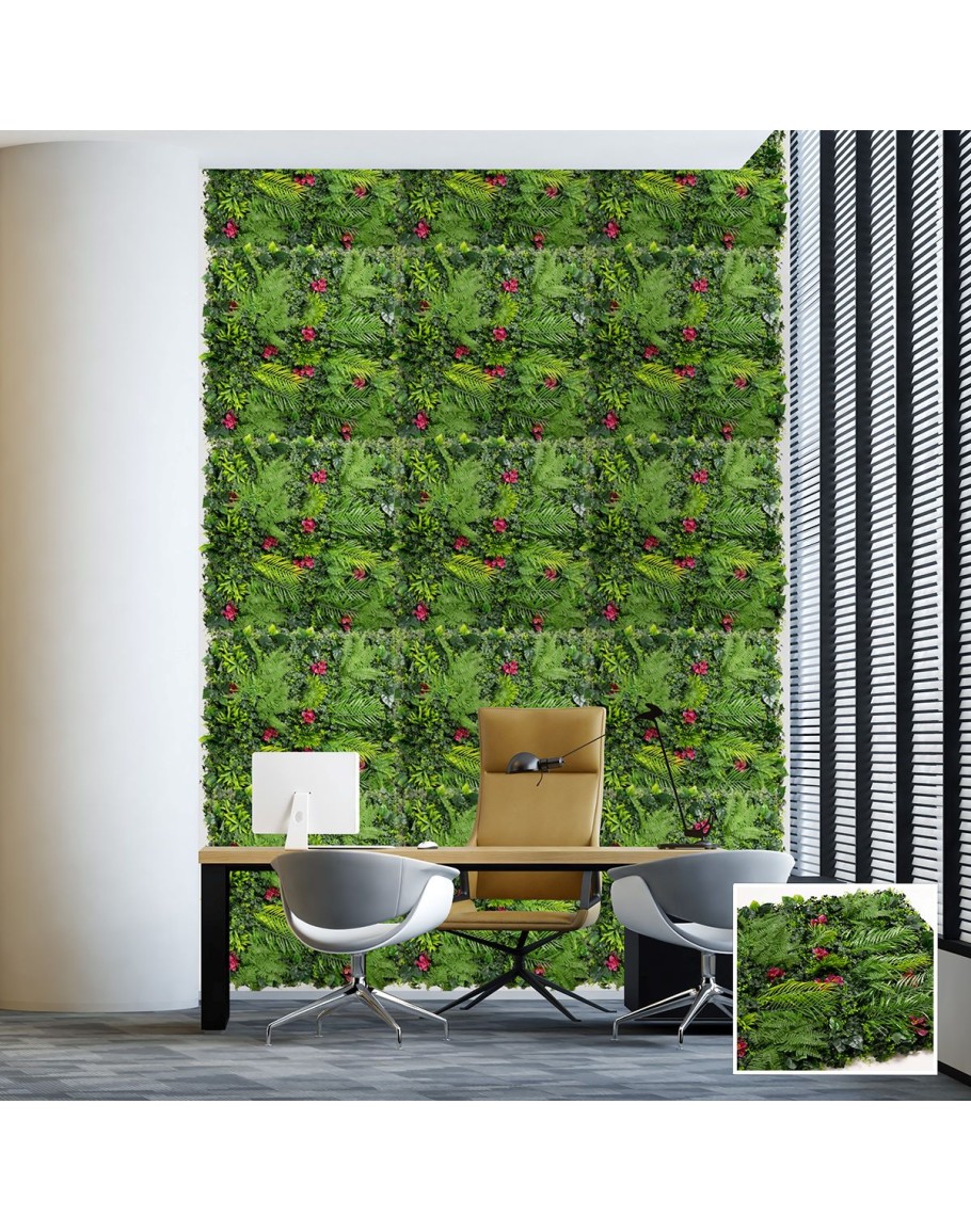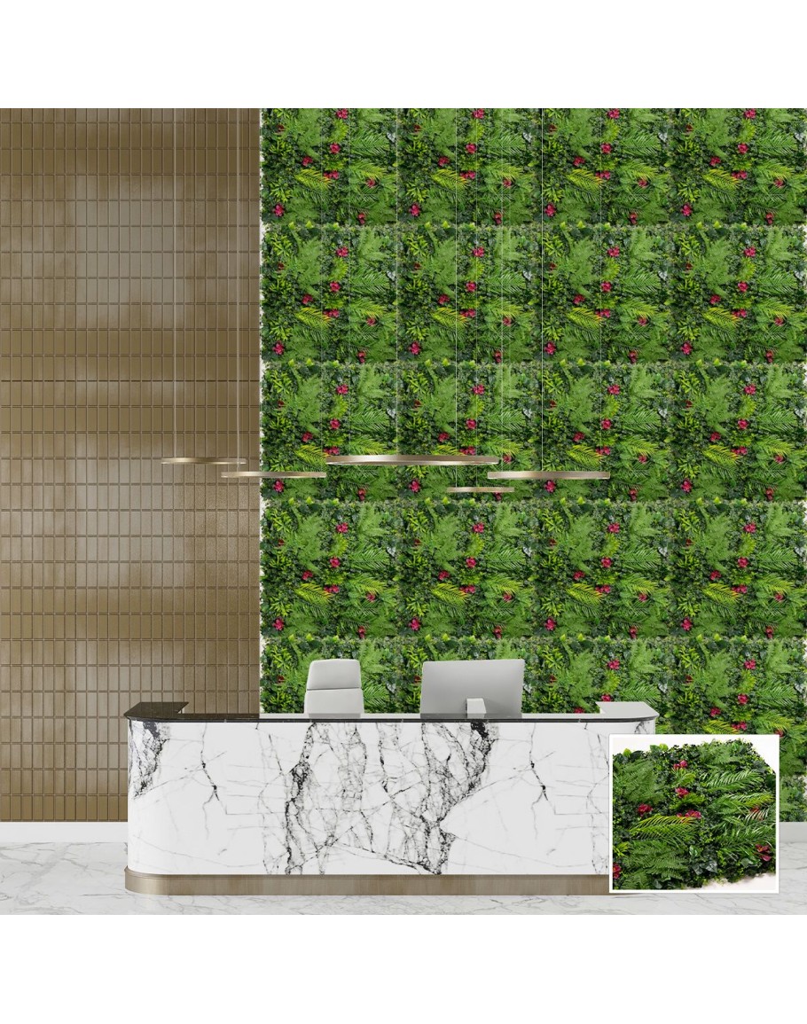 С размер 1м х 1м, този панел имитира естествена тропическа стена, която носи свежест и стил във всеки интериор или екстериор.