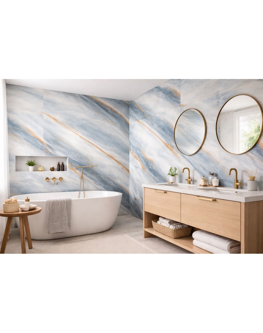 Цвят: Син, бял и златни жилки