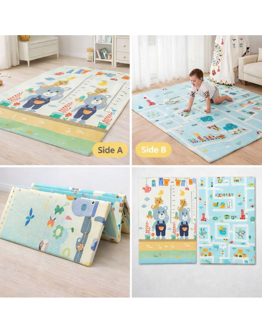 Това не е само сгъваемо килимче за игра за детска стая, а универсална постелка, която ще се превръща в бързо в удобно кътче за игри и свободно движение. С него ще можете да позволите на детето си да лази по пясъка на плажа или върху тревата в двора на вилата, без да се страхувате, че може да се нарани или да изцапа новите си дрешки.