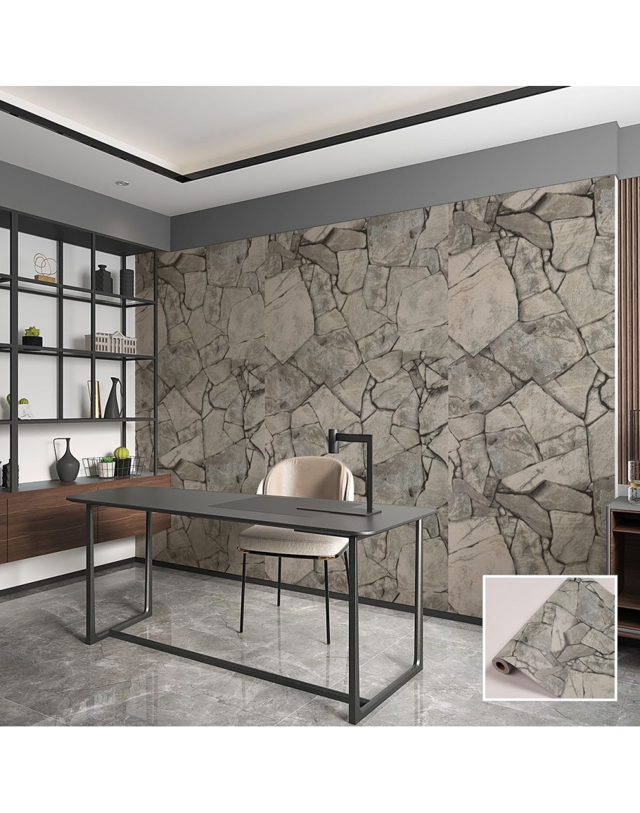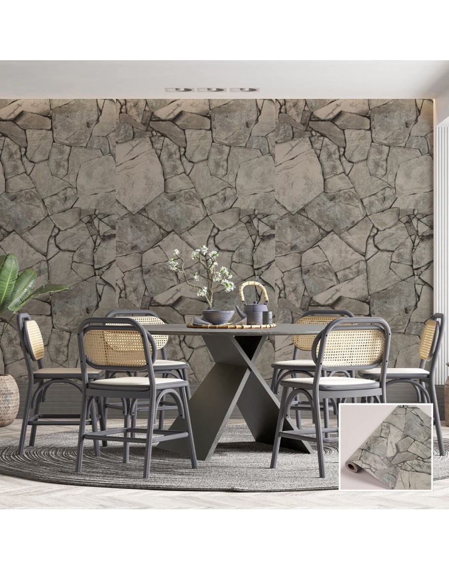 Ефектната имитация на мраморна облицовка в сиви и бежови нюанси се вписва добре както в по-просторни, така и в по-малки жилищни пространства. Стои отлично като фон на леки и светли мебели, но също и зад по-масивна тъмна мебелировка. За монтажа не са ви нужни лепила – процесът е максимално чист и опростен.