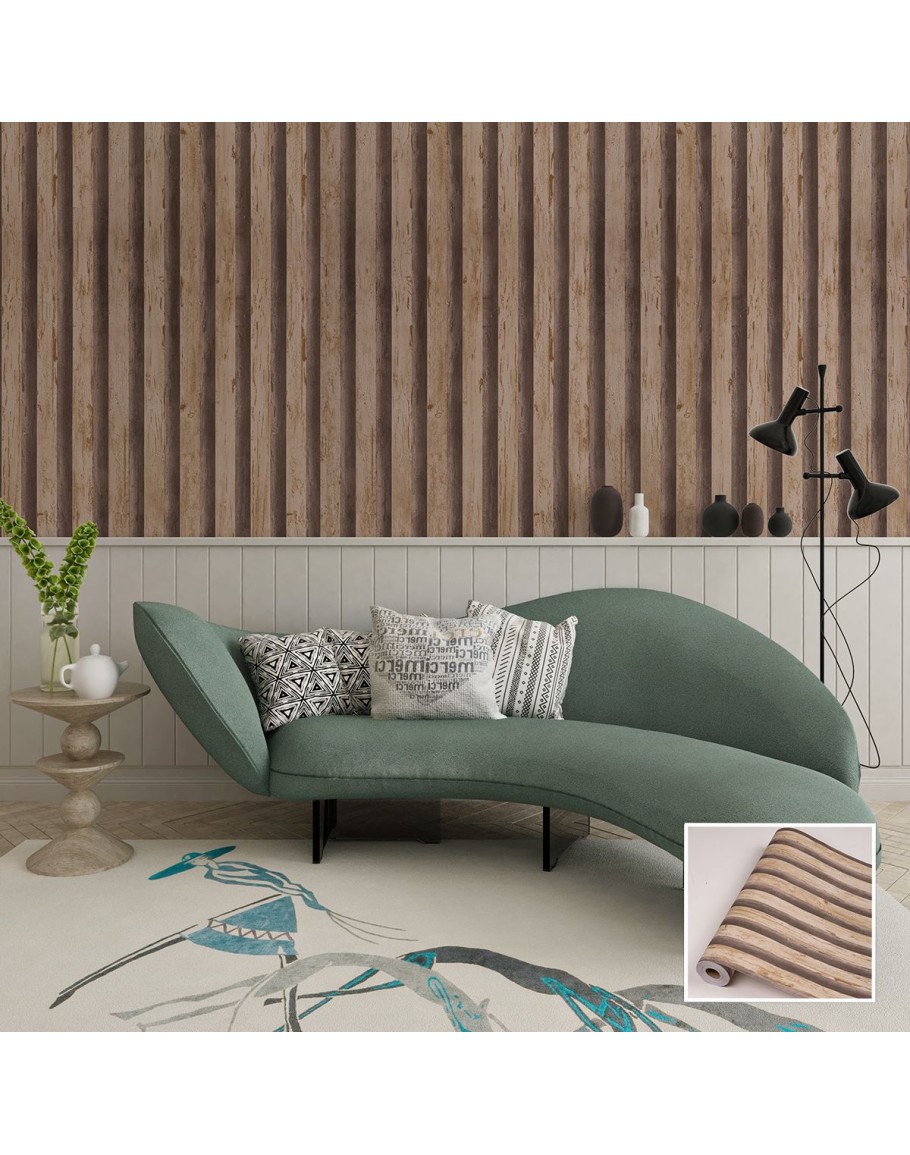 Ролков тапет дърво WPC, 10м х 53см, самозалепващ, миещ