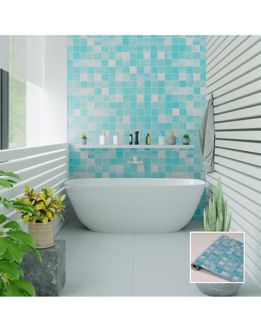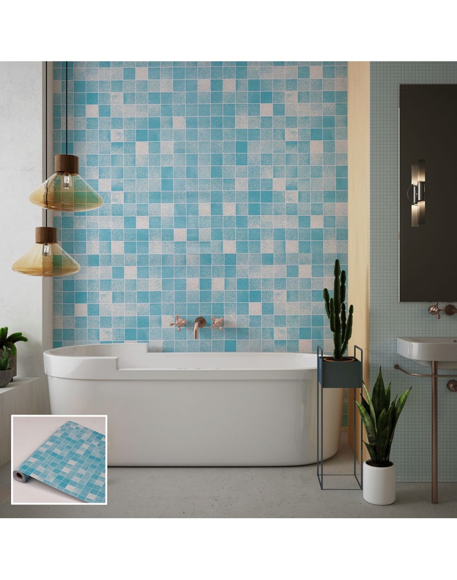 Винилов тапет синя мозайка C-2026-2, 10м х 45см, самозалепващ